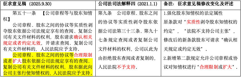 一、《征求意见稿》第五十一条与《公司法司法解释(四)》 第九条对照