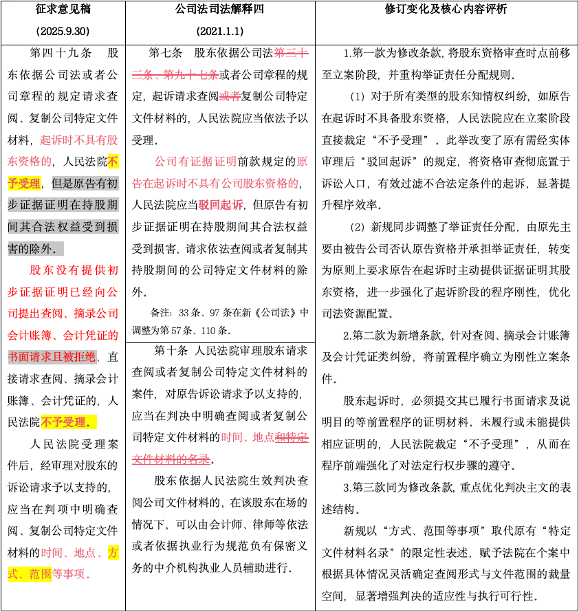 一、《征求意见稿》第四十九条与《公司法司法解释四》条文对比及核心内容解析