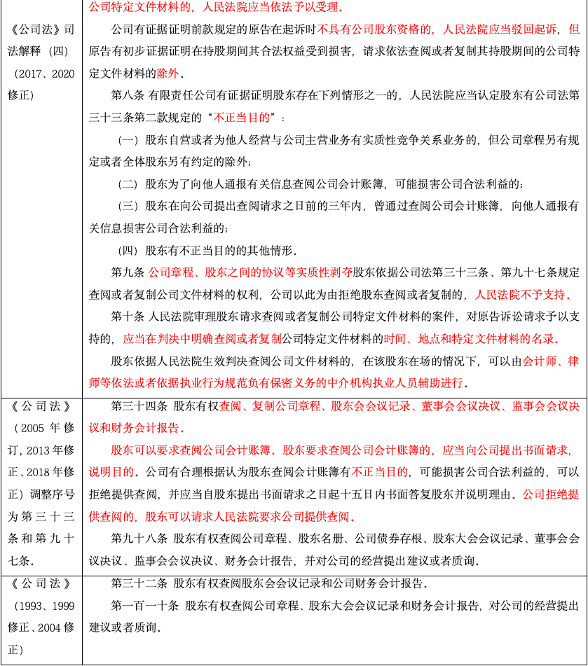 框架奠定(2005年《公司法》):构建“权利—程序—救济”三位一体的基本框架,引入“书面请求说明目的”的前置程序与“不正当目的”抗辩。
