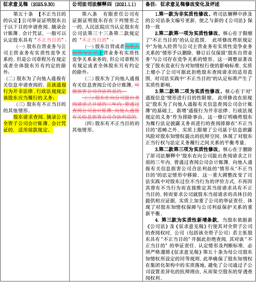 司法裁判精细化(2025年《征求意见稿》):进一步优化程序规则、细化“不正当目的”认定、合理划定章程限制边界。