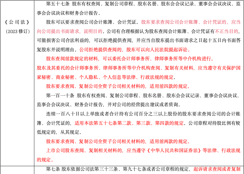 制度现代化(2023年《公司法》):统一有限公司与股份公司的知情权基础,将会计凭证纳入查阅范围,并确立对全资子公司的穿透查阅机制。