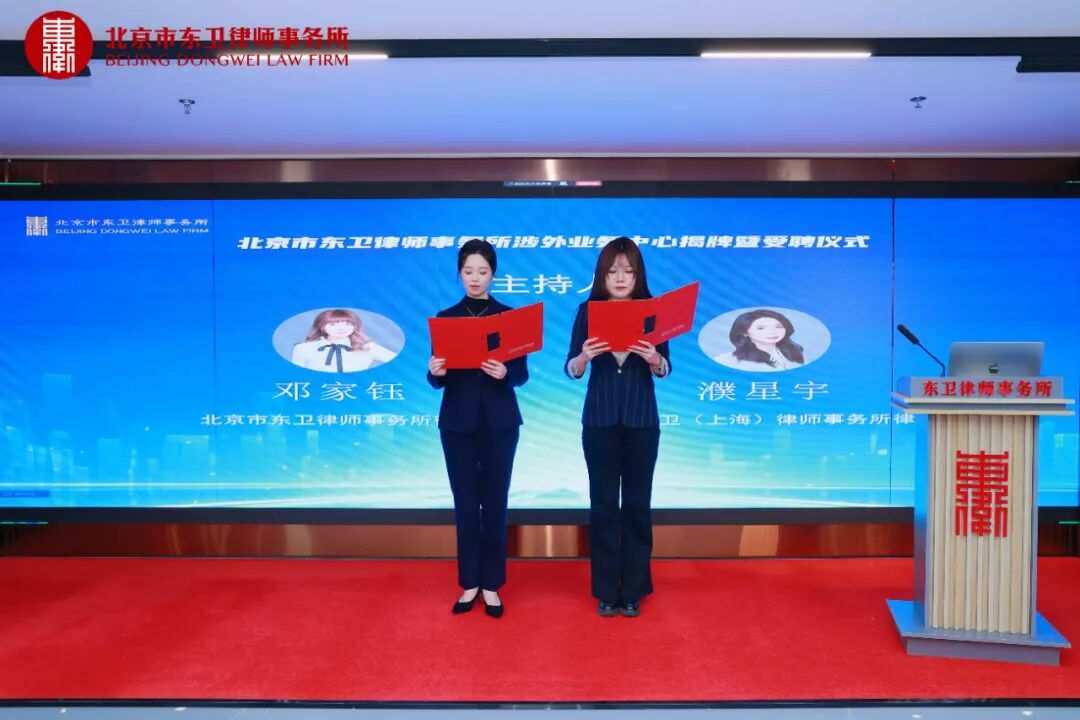 2025年11月28日上午,北京市东卫律师事务所全国涉外业务中心揭牌暨受聘成立在律所六层会议中心隆重举行。本次活动,标志着东卫律所在深化涉外法律服务布局、服务国家高水平对外开放战略迈出了关键一步。