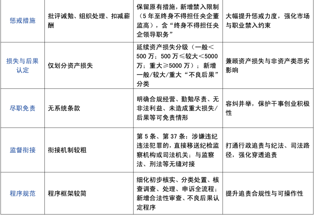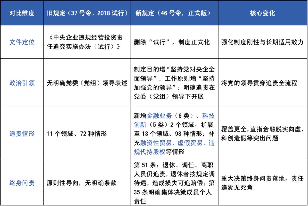 附:央企违规追责新旧规定核心对比表(国资委令37号VS第46号)