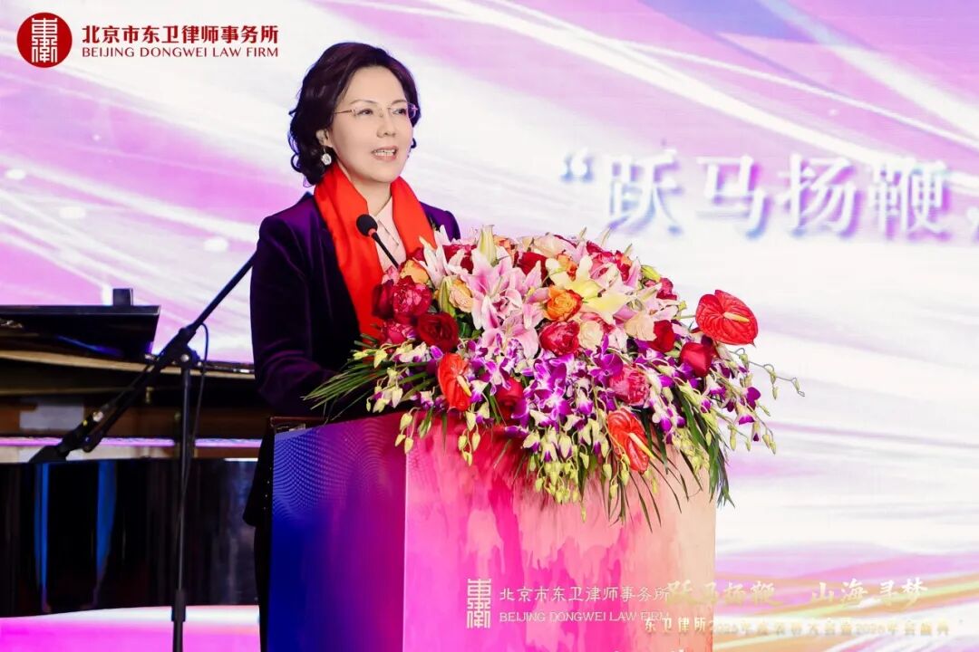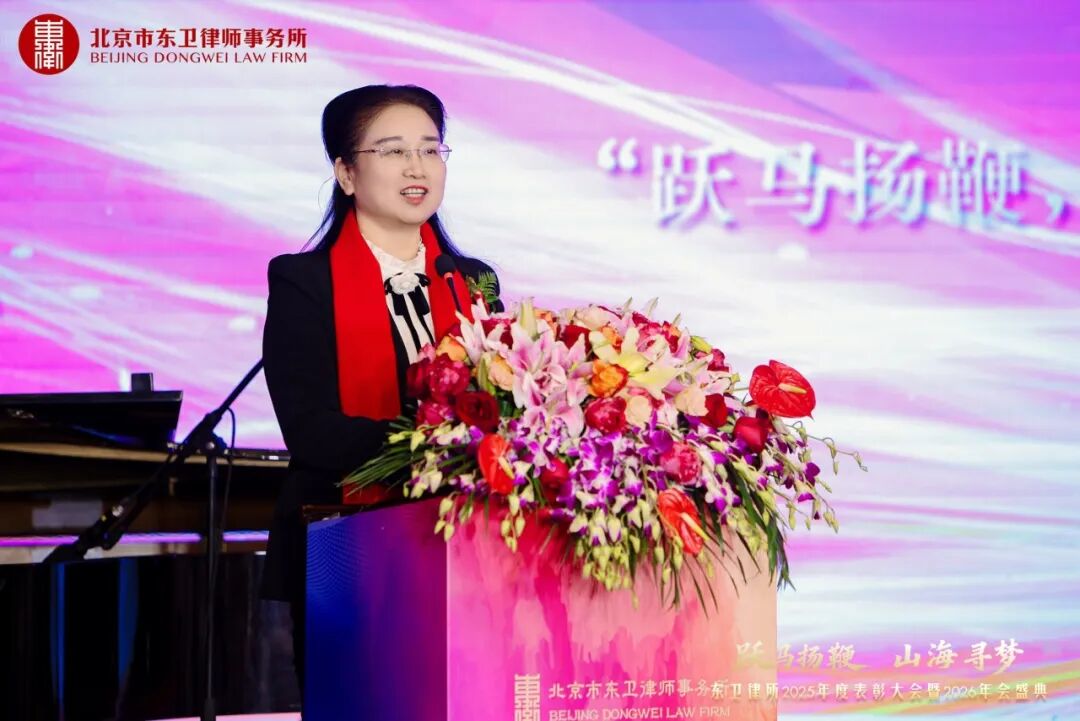 风劲帆满正当时,策马扬鞭再出发。东卫律所党委书记、创始合伙人、管理合伙人、主任郝春莉在盛典致辞中,向全体东卫家人及各界朋友致以衷心感谢。面对充满希望的2026年,她勉励全体东卫人:最远的山海,不在远方,而在我们并肩奔赴的路上;最高的梦想,不在云端,而在每一次全力以赴的晨光中。她号召全体同仁继续保持“跃马扬鞭”的奋进姿态,让梦想照进现实,用奋斗定义未来。在新的一年里携手并肩,共赴山海,共同谱写东卫更加璀璨的明天。